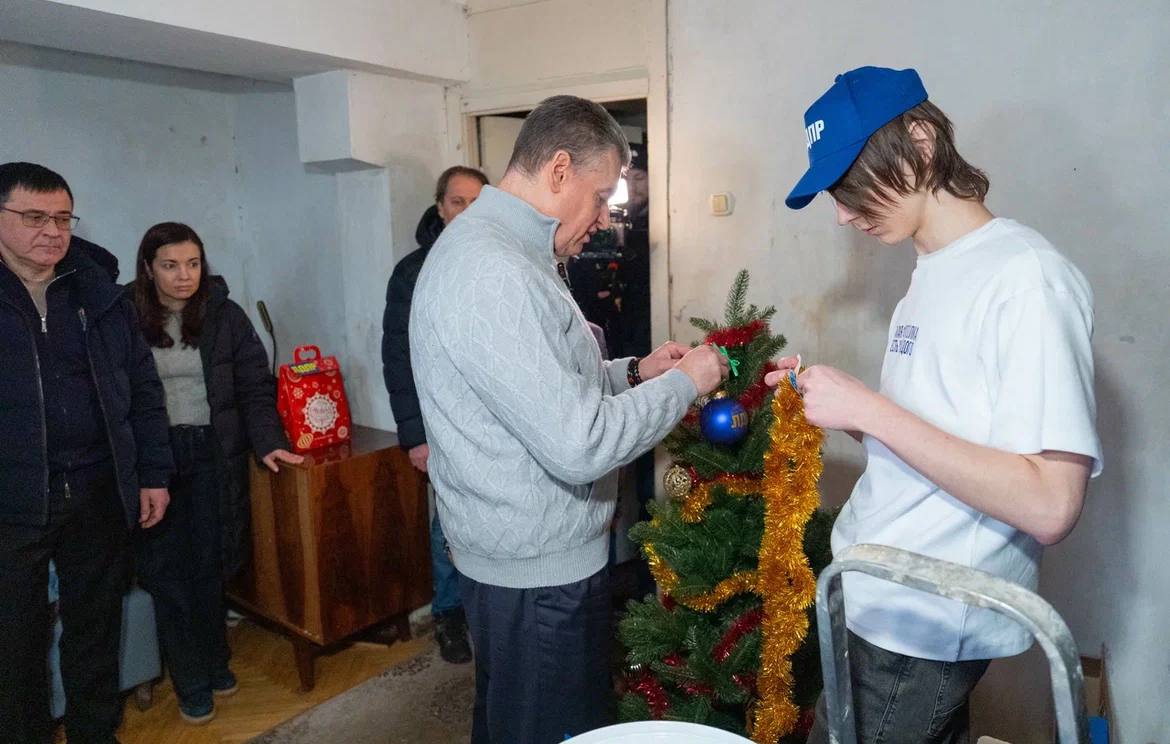 Неравнодушные партийцы привезли раскладной диван, люстры, вызвали электриков, чтобы провести свет, и, конечно же, передали подарки к Новому году. В квартире установили и нарядили елку. Это самое простое, что можно было организовать от души и с любовью этому пожилому человеку.