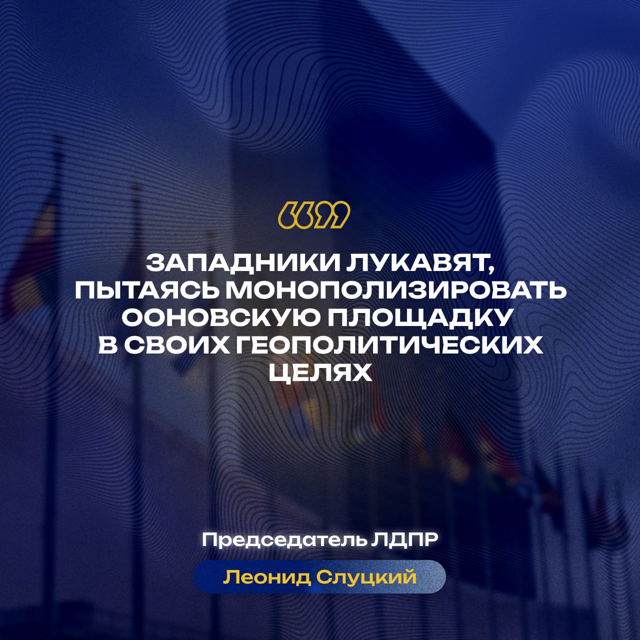 Слуцкий отметил, что одной из ключевых проблем ООН является стремление Запада монополизировать площадку в своих геополитических целях, что создает риски для глобальной безопасности. В качестве примеров он привел военные операции против Югославии, вторжение в Ирак и Ливию, а также ситуацию на Ближнем Востоке.