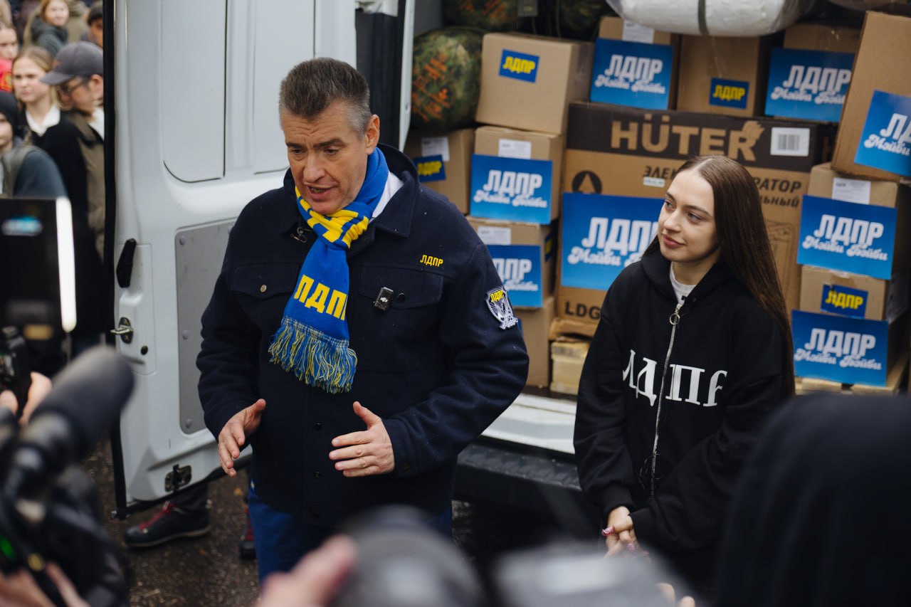 Председатель ЛДПР Леонид Слуцкий и популярная певица Виктория Мэйби Бэйби совместно отправили гуманитарный конвой в зону проведения специальной военной операции в честь Дня народного единства. Помощь предназначена для бойцов танкового батальона «Волга» и 3-го армейского корпуса.